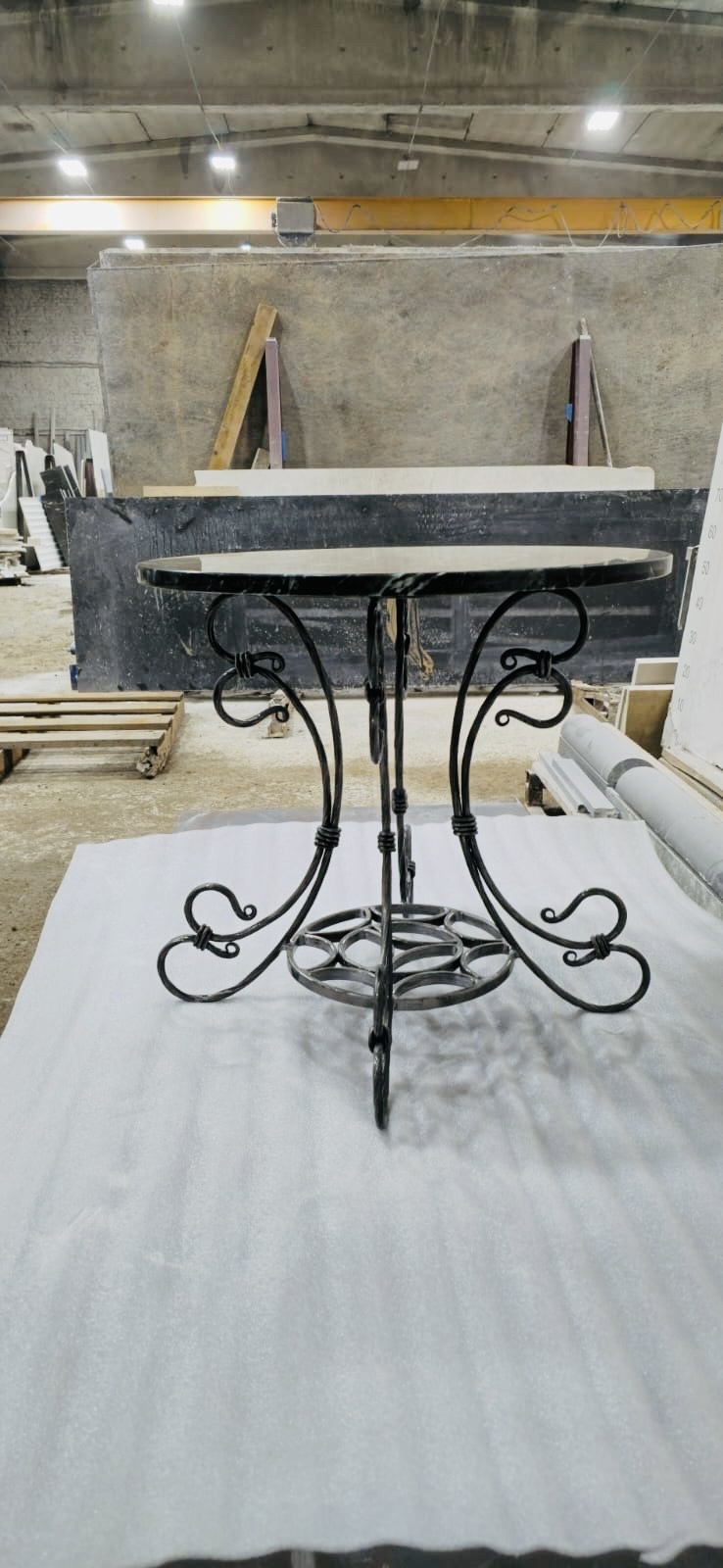 Стол журнальный, ручная работа. Столешница мрамор, подстолье кованое.
