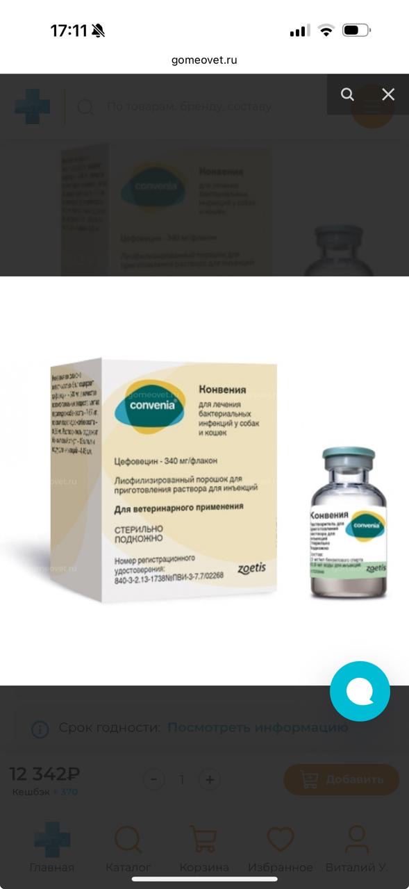 Срочно необходимо приобрести для кошки - препарат Конвения