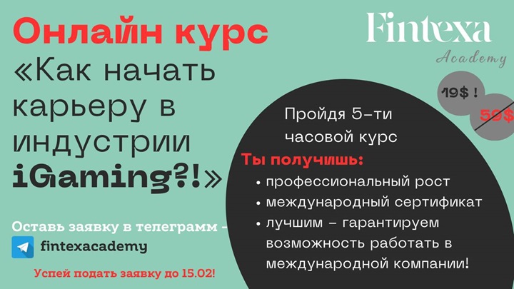 "Fintexa открывает набор на обучение в сфере iGaming. Лучшие кандидаты гарантированно получат работу в международной компании!