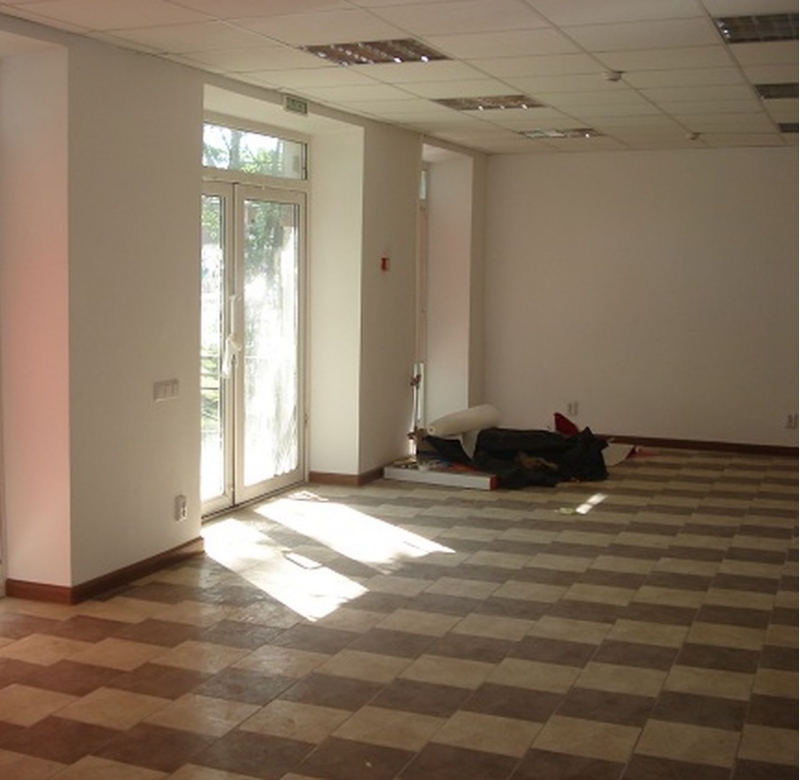 Площадь 50 кв. м., светлое, прямоугольное, есть все коммуникации, вход со стороны шоссе.